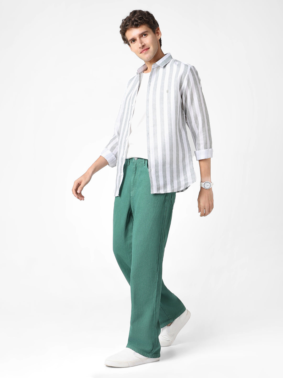 Men's Dark Green Loose Baggy Fit Washed Jeans Non-Stretchable