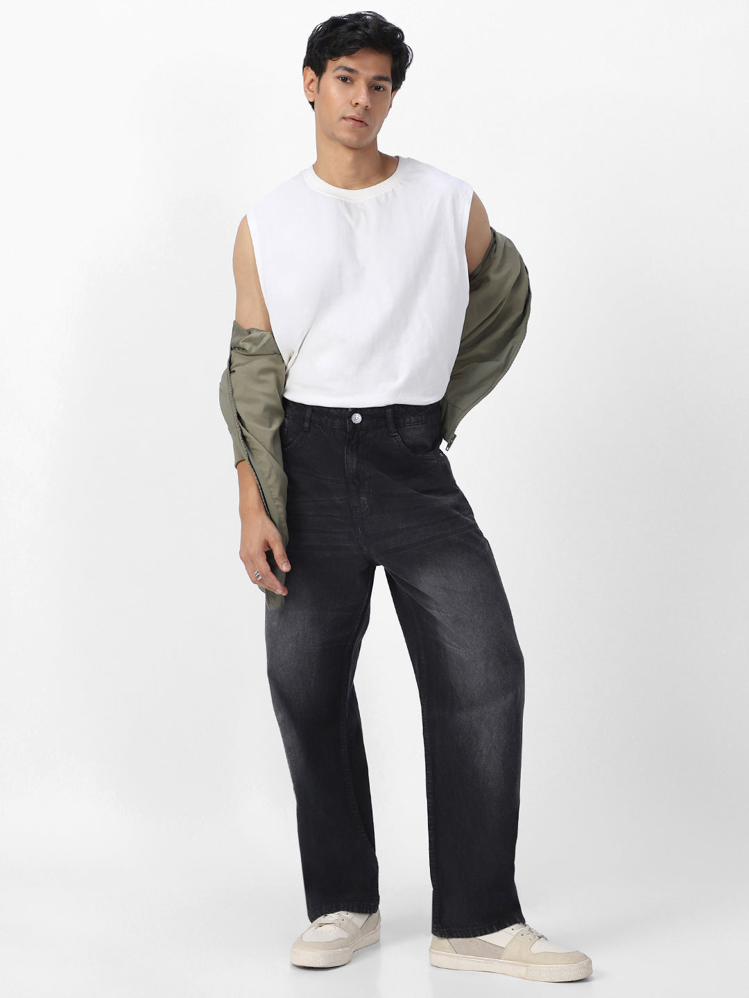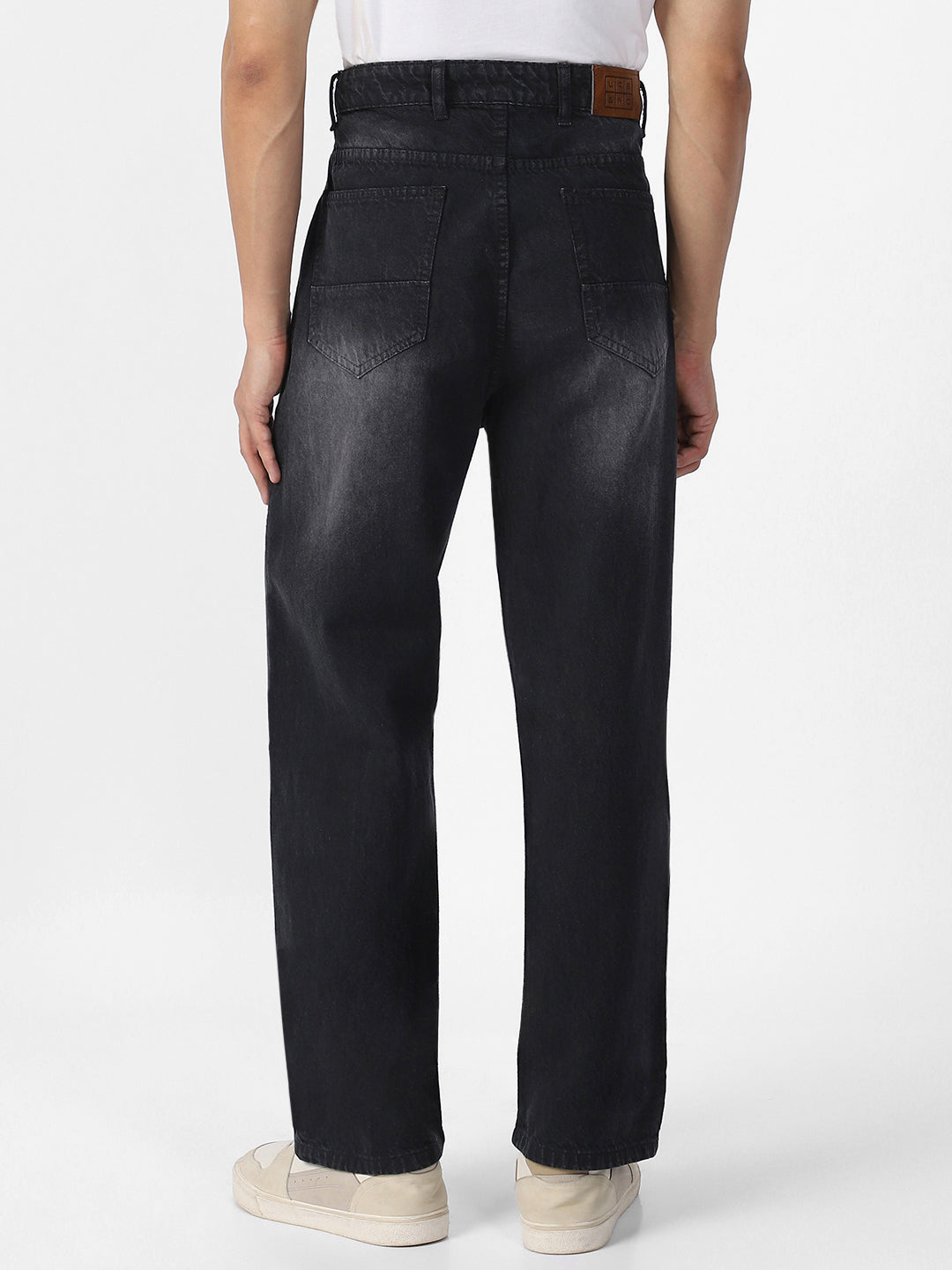 Men's Dark Grey Loose Baggy Fit Washed Jeans Non-Stretchable