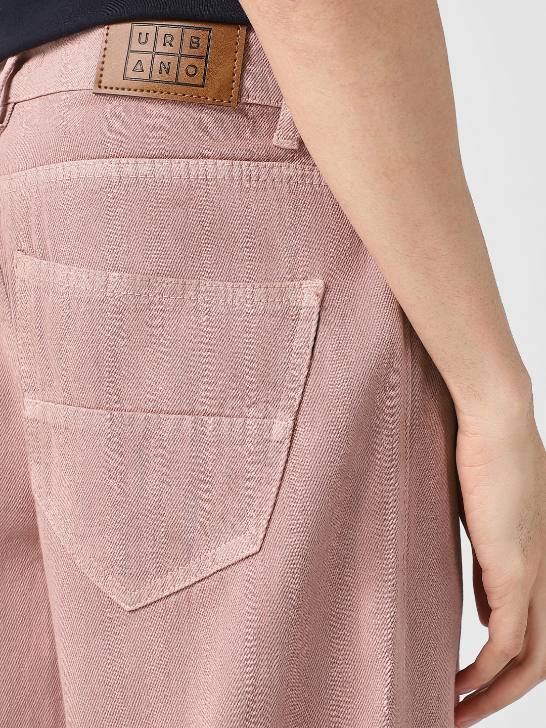 Men's Dark Pink Loose Baggy Fit Washed Jeans Non-Stretchable