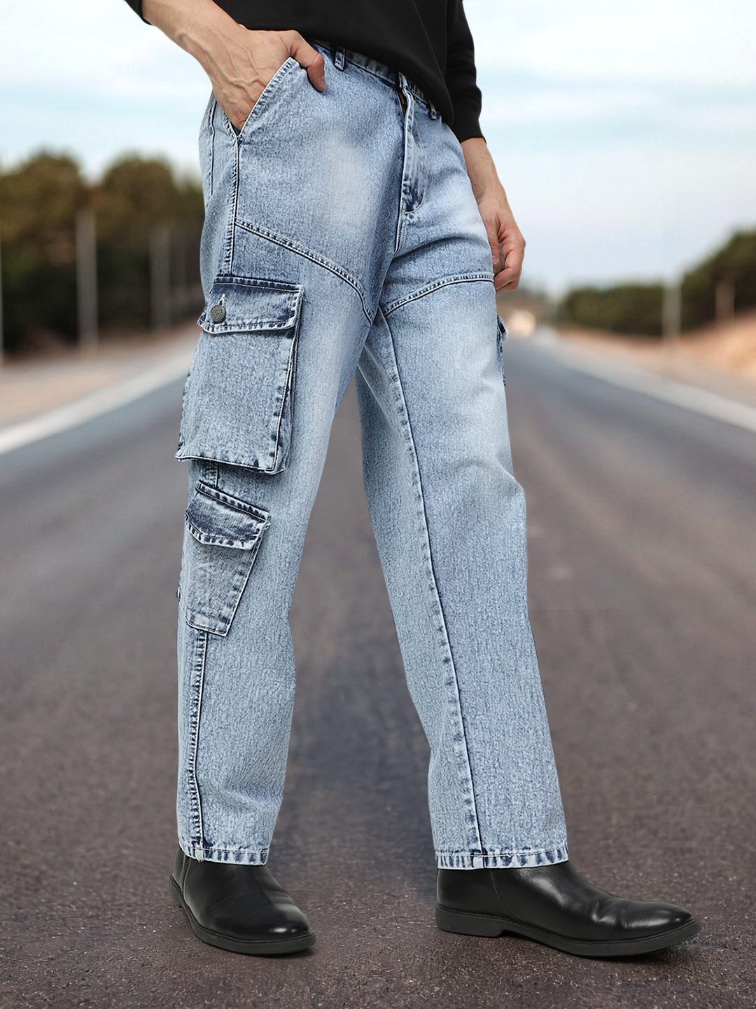 3.Multiple Cargo Pockets: Equipped with spacious cargo pockets, these jeans offer practical storage for essentials like keys, phones, and more, while also elevating your style quotient.