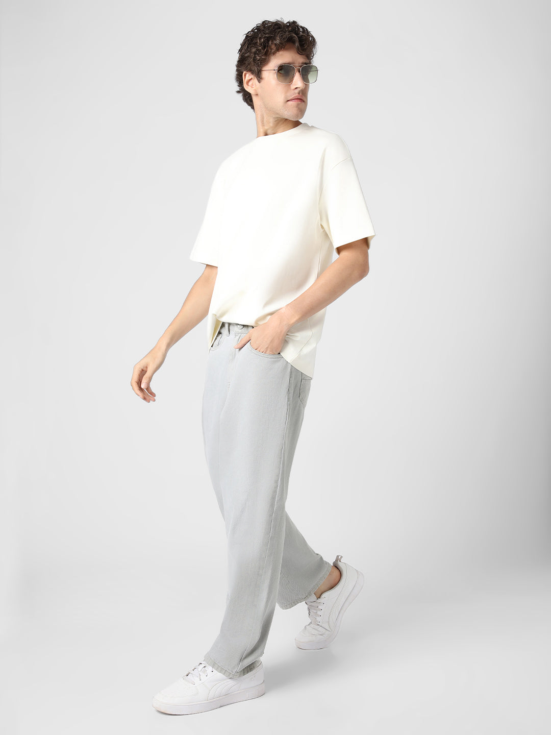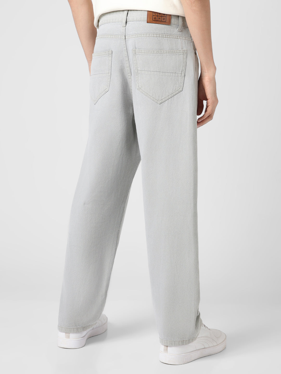 Men's Ice Grey Loose Baggy Fit Washed Jeans Non-Stretchable