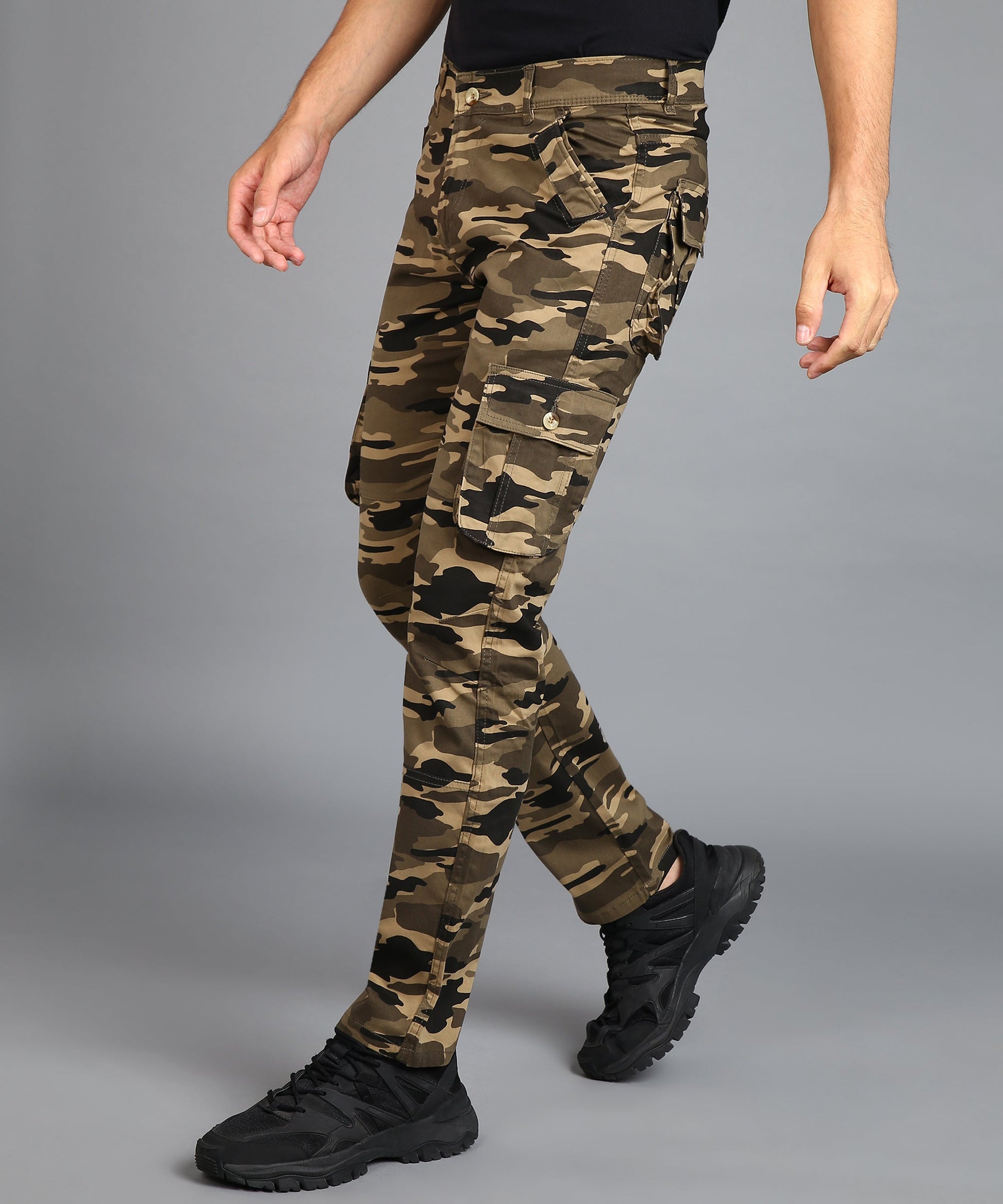 Men's Khaki Regular Fit Military Camouflage Cargo Chino Pant with 6 Pockets