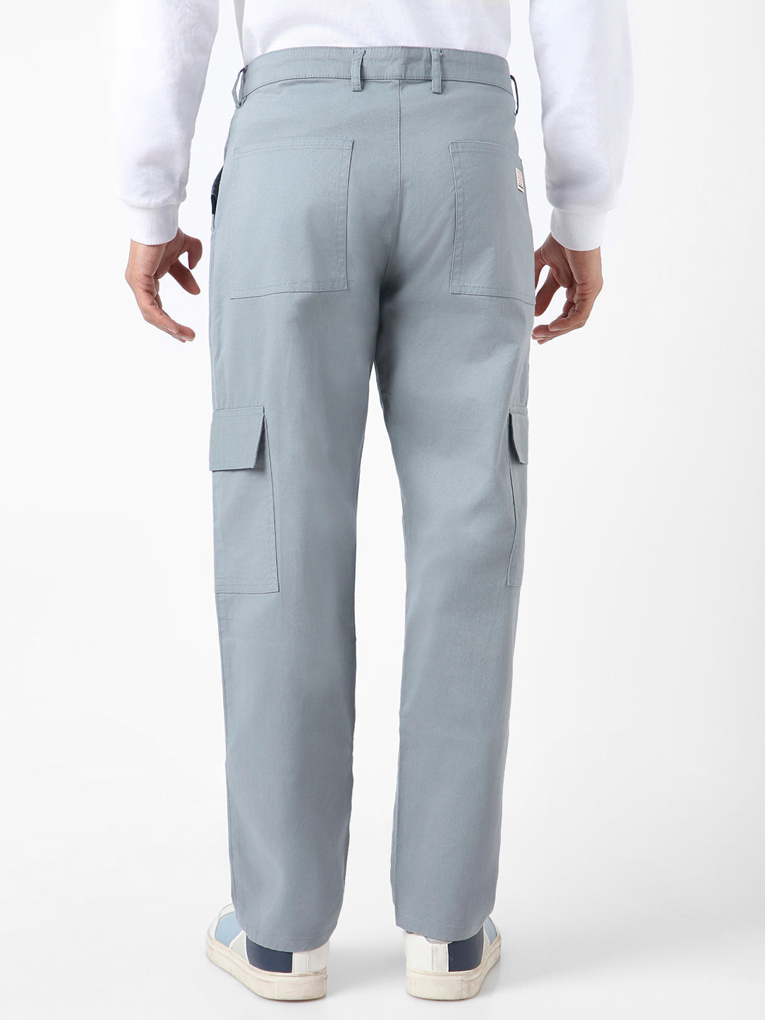 Urbano Fashion Men's Light Blue Regular Fit Solid Cargo Chino Pant with 6 Pockets Stretchable
