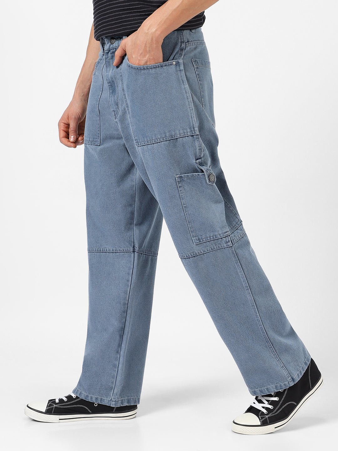 Your search for the perfect trendy pair of Loose Baggy fit cargo jeans ends here! Enhance your casual style with Urbano's relaxed fit denim cargo jeans for men in grey. Crafted from non-stretch cotton, these cargos offer a perfect blend of comfort and utility, making them an ideal choice for your western wear collection. The mid-rise design ensures a comfortable fit, while the clean-look solid pattern adds a touch of sophistication to your ensemble.