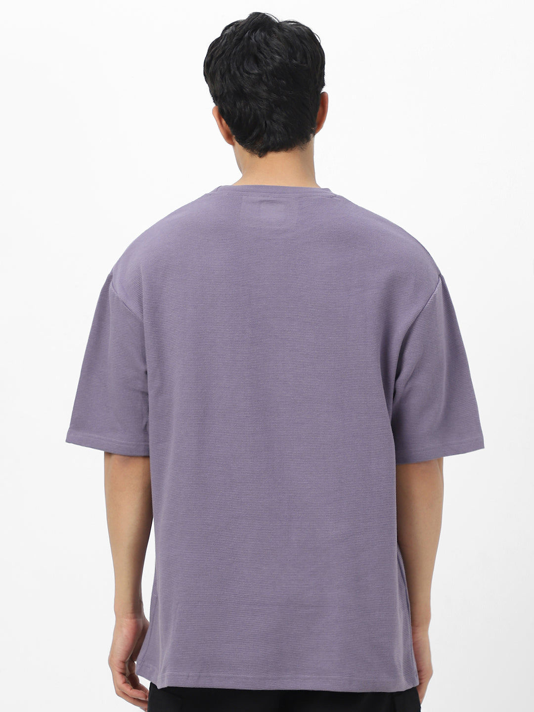 Men's Lilac Textured Round Neck Oversized Half Sleeve Cotton T-Shirt