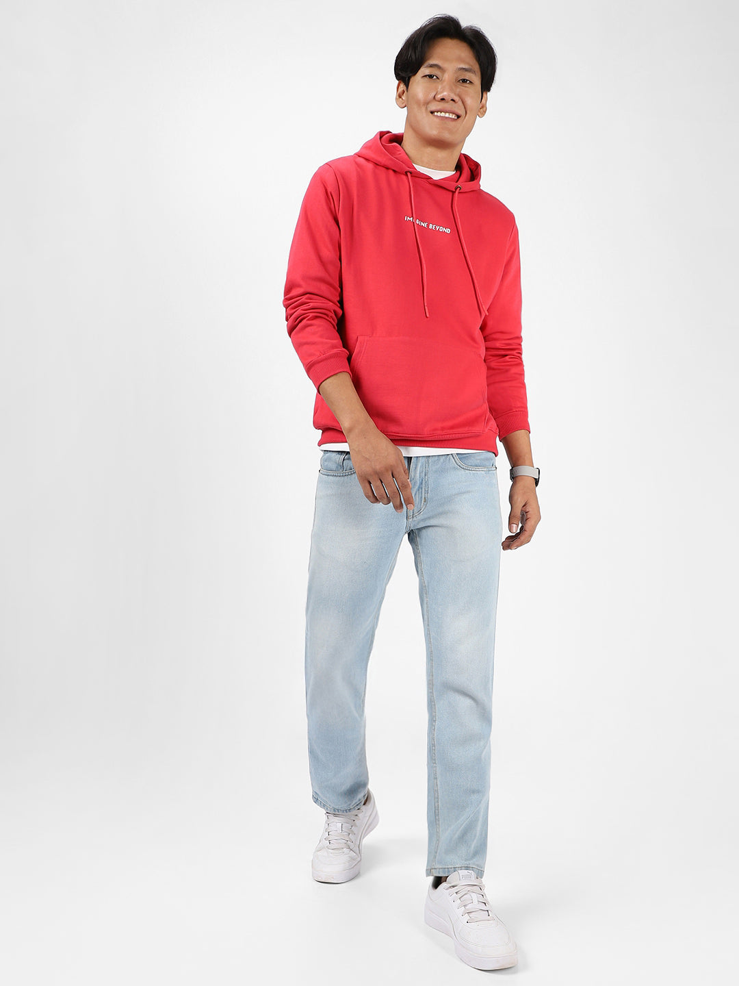Make heads turn and stay stylishly warm in this latest trending design of Urbano Fashion men's maroon solid cotton hooded neck with drawstring closure sweatshirt, which brings the latest trend for the fashion conscious. The in-vogue solid sweatshirt with chest printed design; soft, warm & premium cotton fabric, closed front, kangaroo pockets, hooded neck, Regular Fit & Ribbed hem, full sleeve with ribbed cuff, make it a wardrobe must-have. Pair this fashionable and comfortable full sleeve sweatshirt with any Urbano Fashion jeans, trousers, shorts for the perfect casual, evening, gym wear or party wear look, and never go out of style!