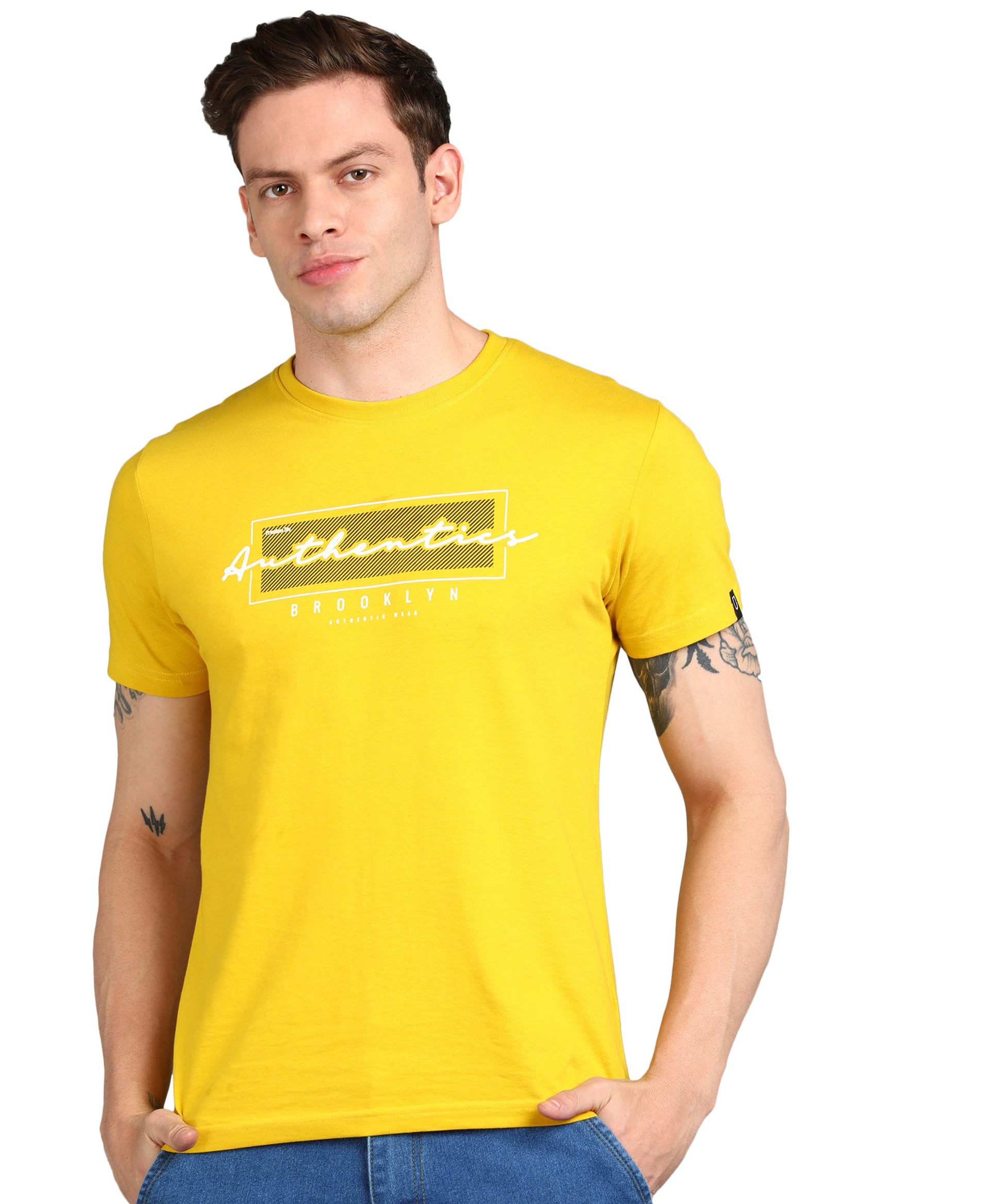 Urbano Fashion Men's Yellow Graphic Printed Round Neck Half Sleeve Slim Fit Cotton T-Shirt