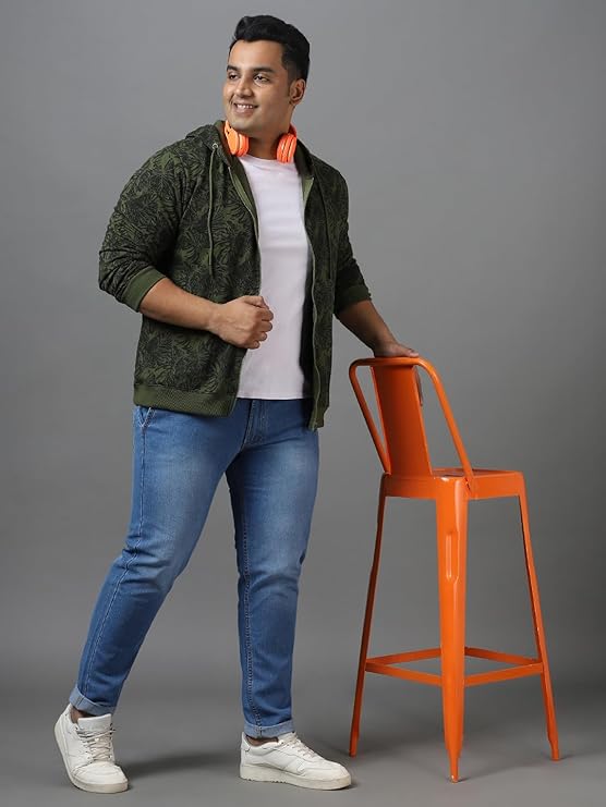 Make heads turn and stay stylishly warm in this latest trending design of Urbano Plus men's dark green printed cotton blend Hooded Sweatshirt, which brings the latest trend for the fashion conscious. The in-vogue & vibrant all-over leafe printed design; soft, warm & premium cotton blend fabric, zippered full-front opening, hooded neck with drawstring, custom fit & regular hem make it a wardrobe must-have. Pair this fashionable and comfortable full sleeve Hooded Sweatshirt with any Urbano Plus jeans, trousers, shorts for the perfect light winters, casual, evening, gym wear or party wear look, and never go out of style!