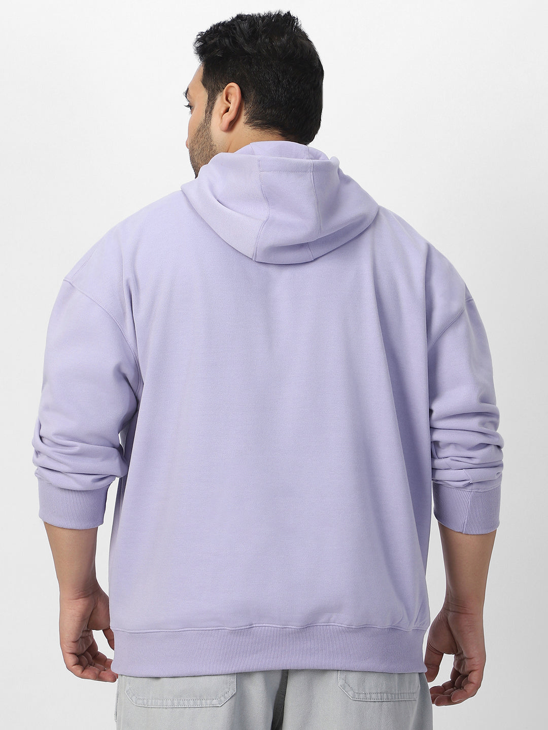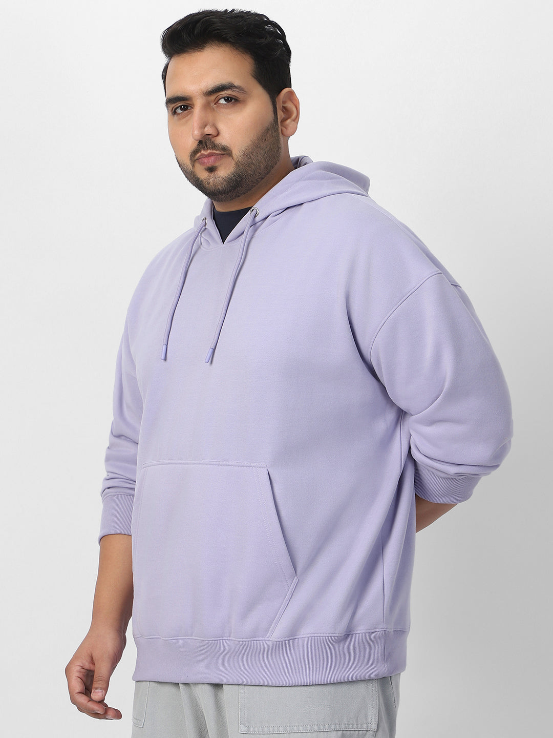 Plus Men's Purple Heather Cotton Solid Oversized Hooded Neck Sweatshirt